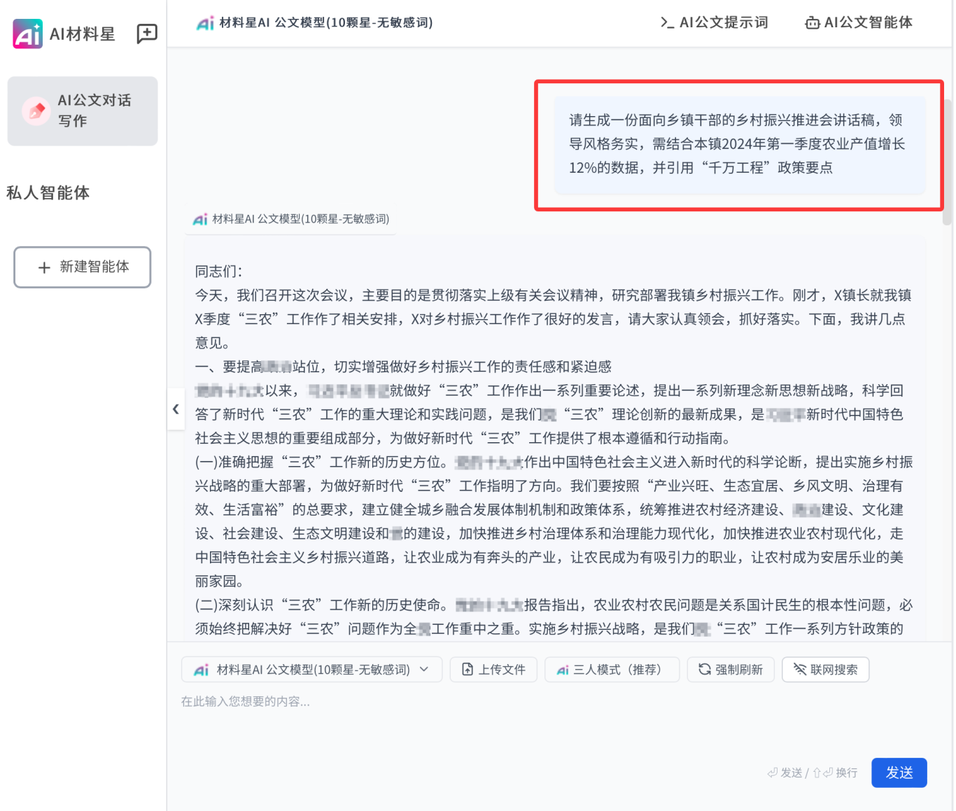 比如仅输入“写一篇乡村振兴讲话稿”,导致AI生成的内容泛泛而谈,缺乏针对性