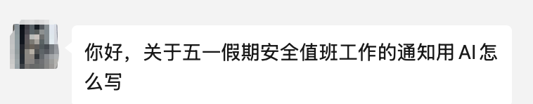 小伙伴问我,五一假期安全值班工作的通知用AI怎么写
