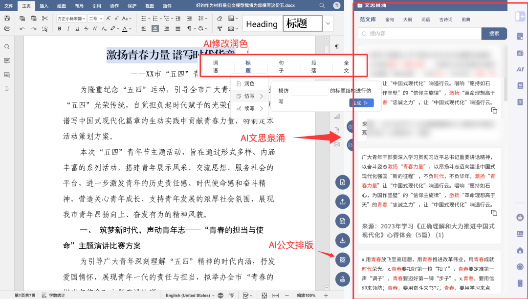 如不满意可使用其中的AI文思泉涌、Ai修改润色功能