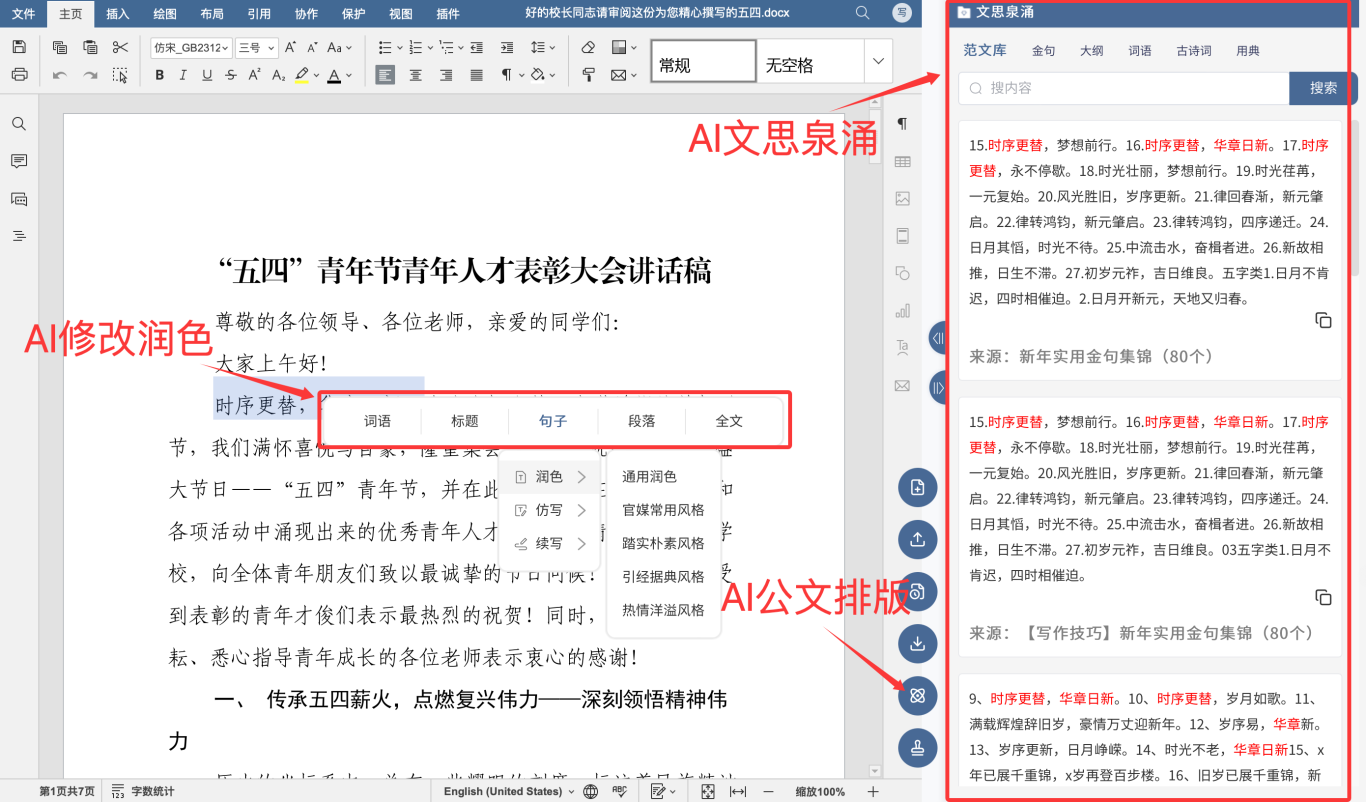 如不满意可使用其中的AI文思泉涌、Ai修改润色功能
